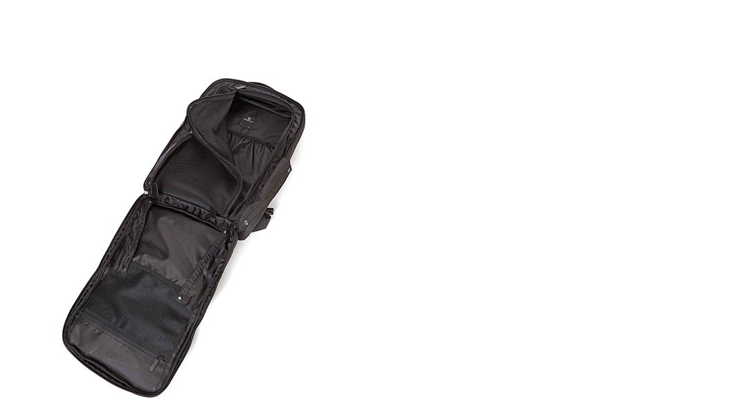 • 메인 수납공간 내부에 와이드 메시 지퍼 포켓, U자 형태의 메시 디바이더, 도큐먼트 슬리브 포켓, 수통 포켓 구성 (U자형 메시 디바이더는 미사용 시 롤다운해 벨크로로 고정 가능)
