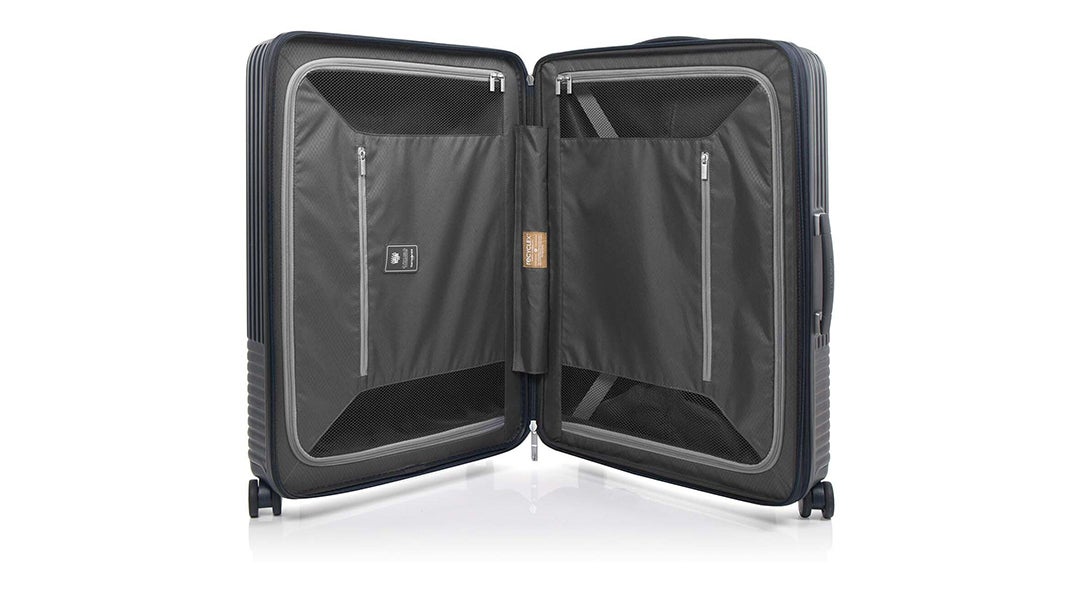 - 안감 RECYCLEX 원단 적용. 환경보존을 위한 쌤소나이트사의 노력의 일환이며, 자사 고유의 기술력으로 페트병을 재활용 및 가공하여 일반 플리에스터 원단과 비슷한 내구성과 퀄리티를 자랑.