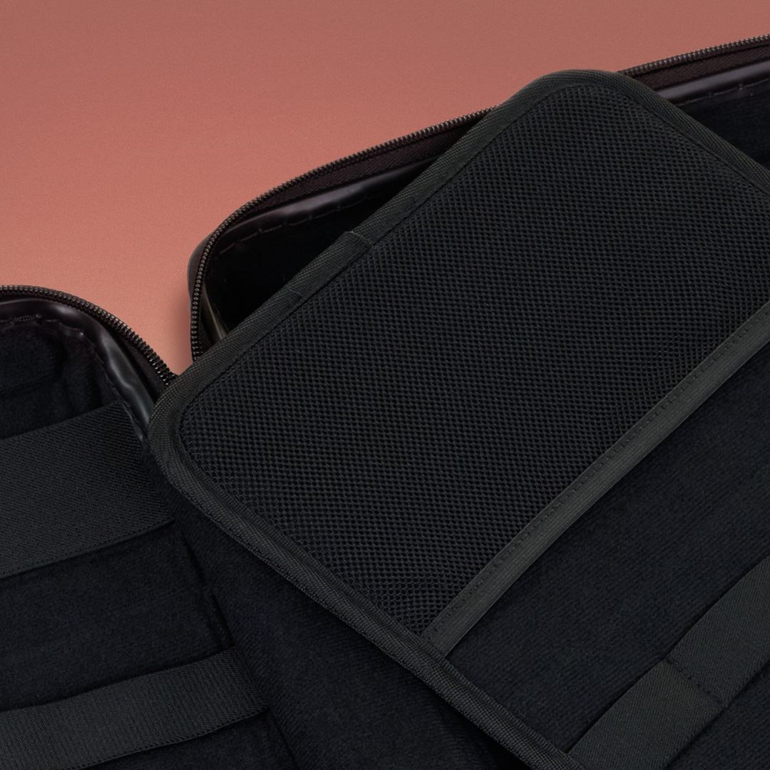 외부는 재활용된 Sorplas™ 폴리카보네이트로 제작되어 뛰어난 내구성을 지녔으며, 생산과정에서 발생하는 이산화탄소의 양을 최소화한 환경 친화적인 가방입니다.