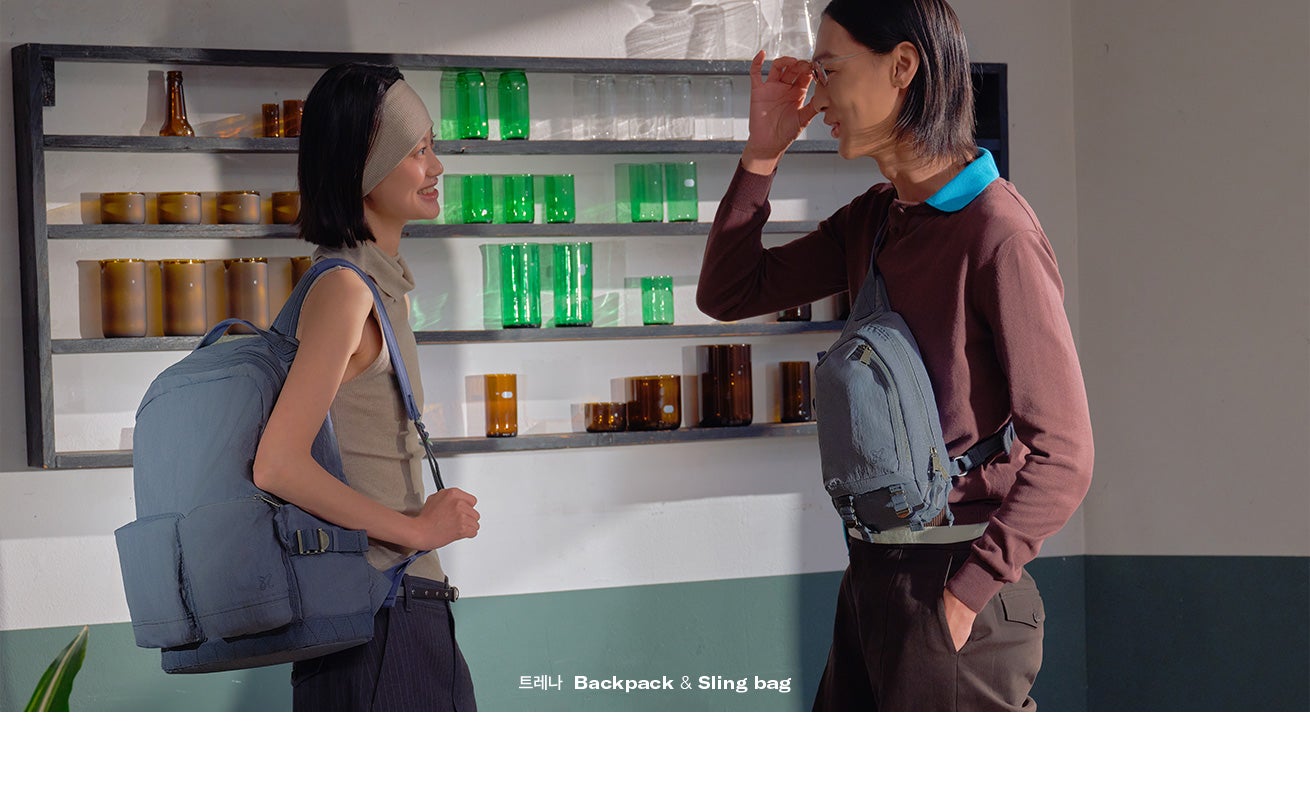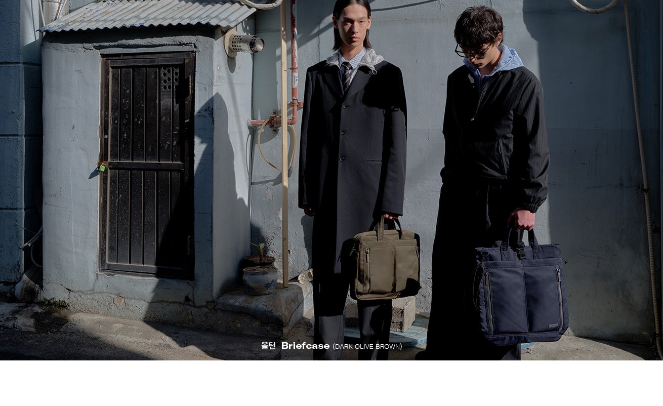 02 ORRTON 올턴. ORRTON 컬렉션은 하루의 이동 경로 속에서 자연스럽게 어울리는 비즈니스 캐주얼 라인입니다. 은은한 광택감의 나일론 트윌 원단을 적용해 정제된 인상과 캐주얼한 무드의 균형을 완성했습니다. 오피스부터 일상까지, 비즈니스와 캐주얼의 경계에서 가장 현실적인 선택지를 제안합니다.