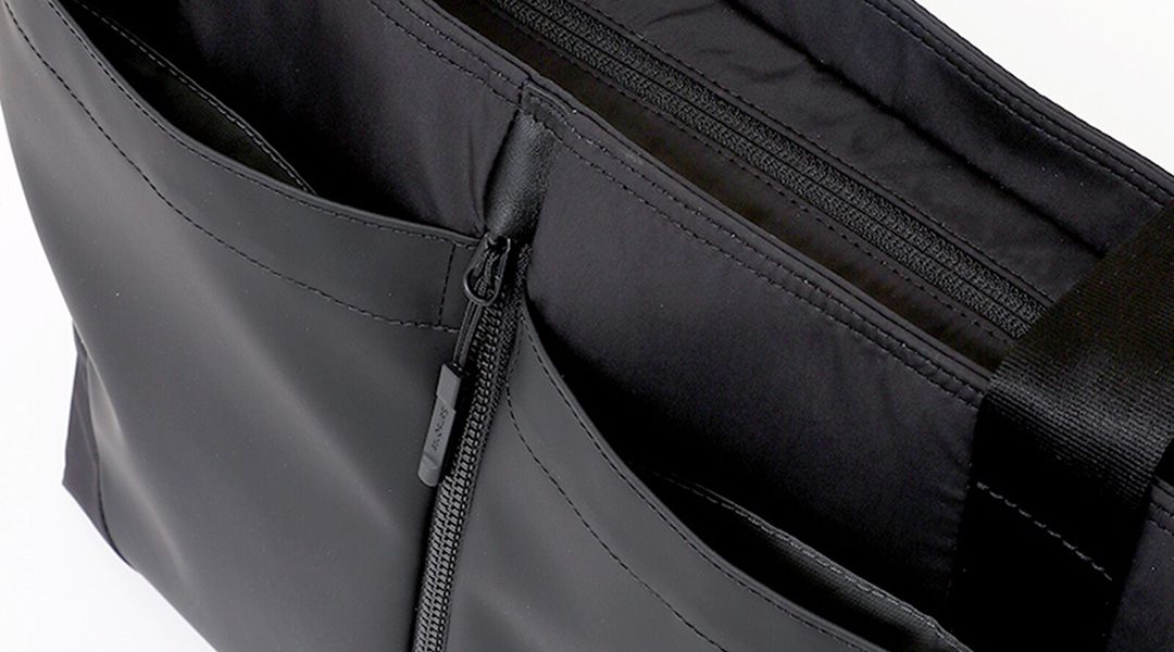 • 주요 소재는 초미세 나일론 실을 사용한 고밀도 방수 폴리에스터 원단인 DICROS로, 고급스러운 실루엣 제공
