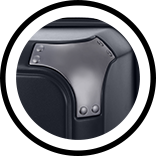 로큰롤 스타일의 스터드 & 스트랩과 멋스럽게 어우러진 코너 프로텍터, 가죽 손잡이