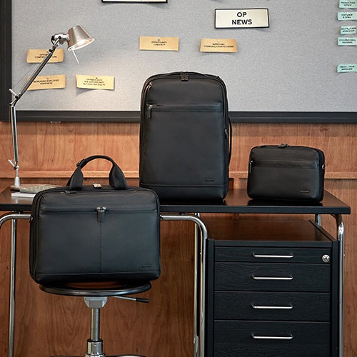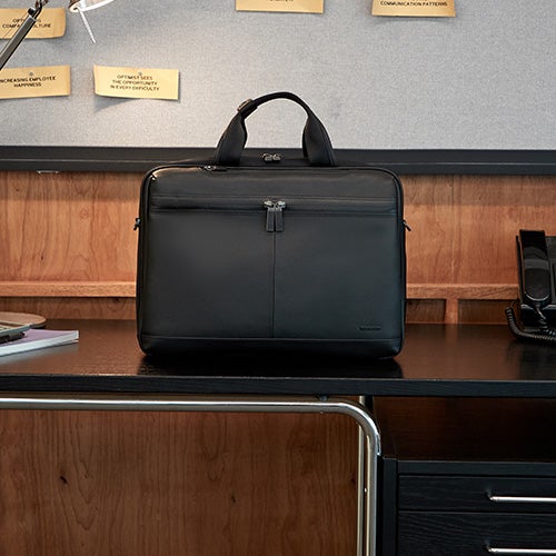 내구성이 뛰어난 압축 PU 소재를 사용해 비즈니스의 다양한 순간에 함께할 수 있으며, 자연스러운 터치감으로 착용 시 편안함을 선사합니다. 메인 소재와 조화를 이루는 엠보 지퍼 디테일이 더해져, 미니멀한 실루엣의 진가를 보여주는 컬렉션입니다.