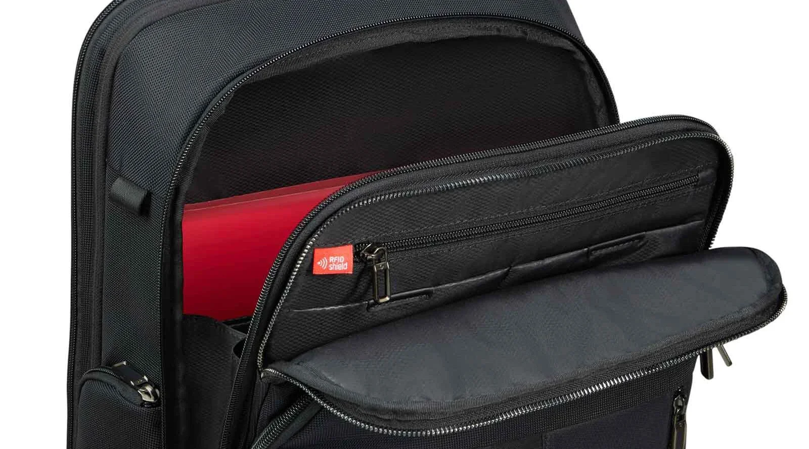 • RFID 차단 기능이 있는 포켓으로 개인 정보 보호 가능